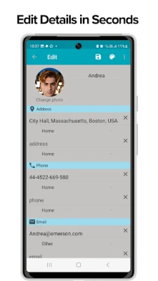 A very good app. It's lightweight, easy to use, has all the necessary fields, and you can add avatars to your contacts.