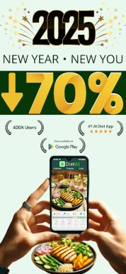 Kickstart your health journey with our "New Year, New You" campaign! For a limited time, enjoy 70% off DietAI Premium: our biggest discount so far! Crush your New Year's resolutions with advanced tools to help you lose weight, eat healthier, and achieve your wellness goals. Don’t wait, start transforming your health today!