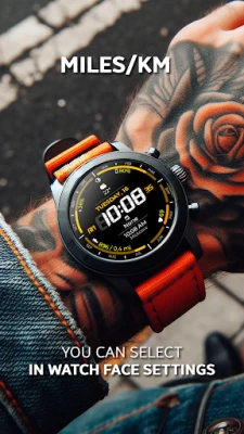 - Select whether to display the distance traveled in miles or kilometers (Select in the watch face settings).