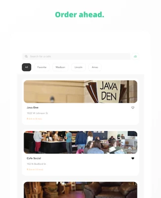 Discover new destinations Find new cafes by browsing the list of local shops near you. Learn about upcoming events on your app home screen.