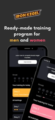 • In the Iron Kegel app, the workout plan adjusts for men and women.