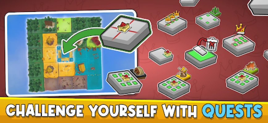 - Match and connect terrain tiles to expand your realm