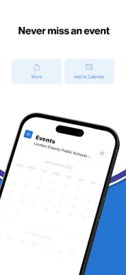 NEVER MISS AN EVENT The event section shows a list of events throughout the district. Users can add an event to their calendar to share the event with friends and family with one tap.