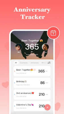 - Automatically calculate love days, wedding anniversaries, birthdays, days together, and more.