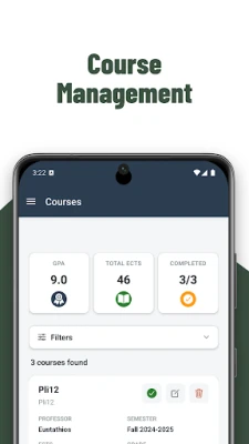 Course Management: Add and organize your current courses by semester, with support for ECTS and grading scales.
